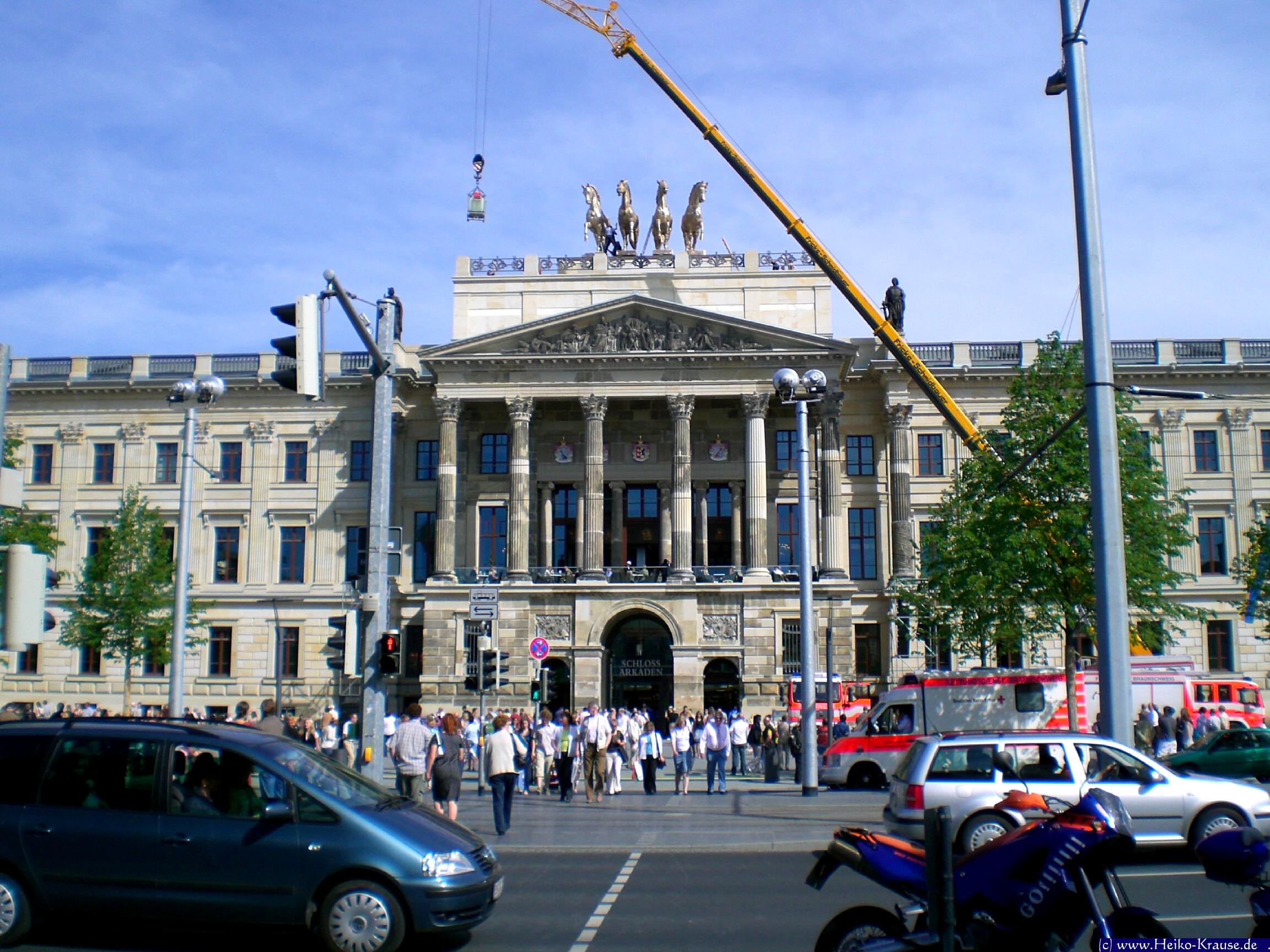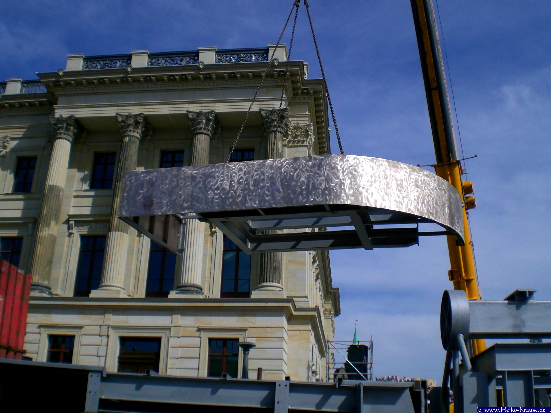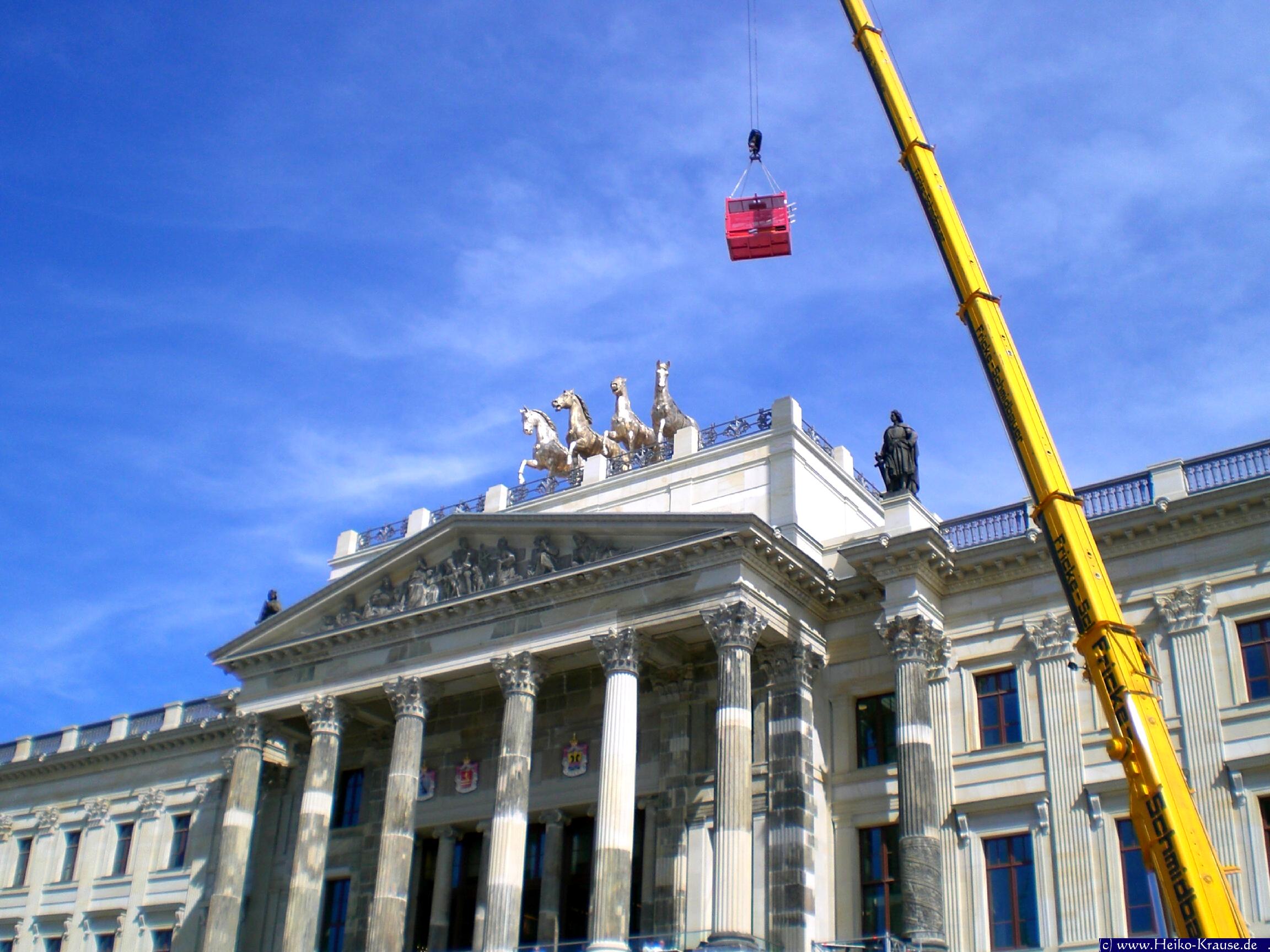 Bilder von Teilen der Quadriga am Boden und im prov. Aufbau. Bilder von H.Krause und A.Uhder