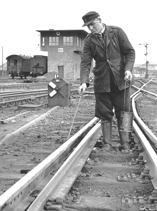 Der Fotograf notierte auf der Rückseite des Bildes: "Der Weichenreiniger"